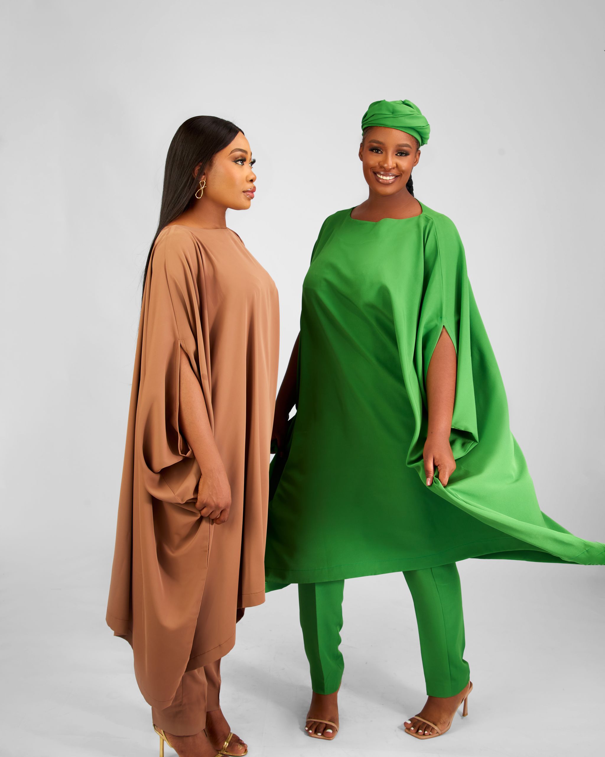 With its side arm slits and luxurious drape, the Agatha Set glides with every step whether in earthy caramel or vibrant emerald, navy blue or royal purple, this set speaks volumes in simplicity.